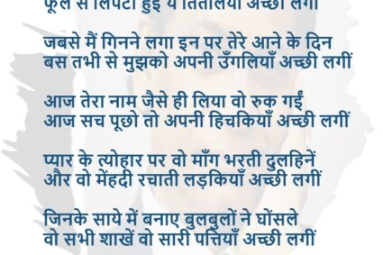 कोई नहीं है देखने वाला तो क्या हुआतेरी तरफ़ नहीं है उजाला तो क्या हुआ चारों तरफ़ हवाओं में उस की महक तो हैमुरझा रही है साँस की माला तो क्या हुआ बदले में तुझको दे तो गए भूक और प्यासमुँह से जो तेरे छीना […]